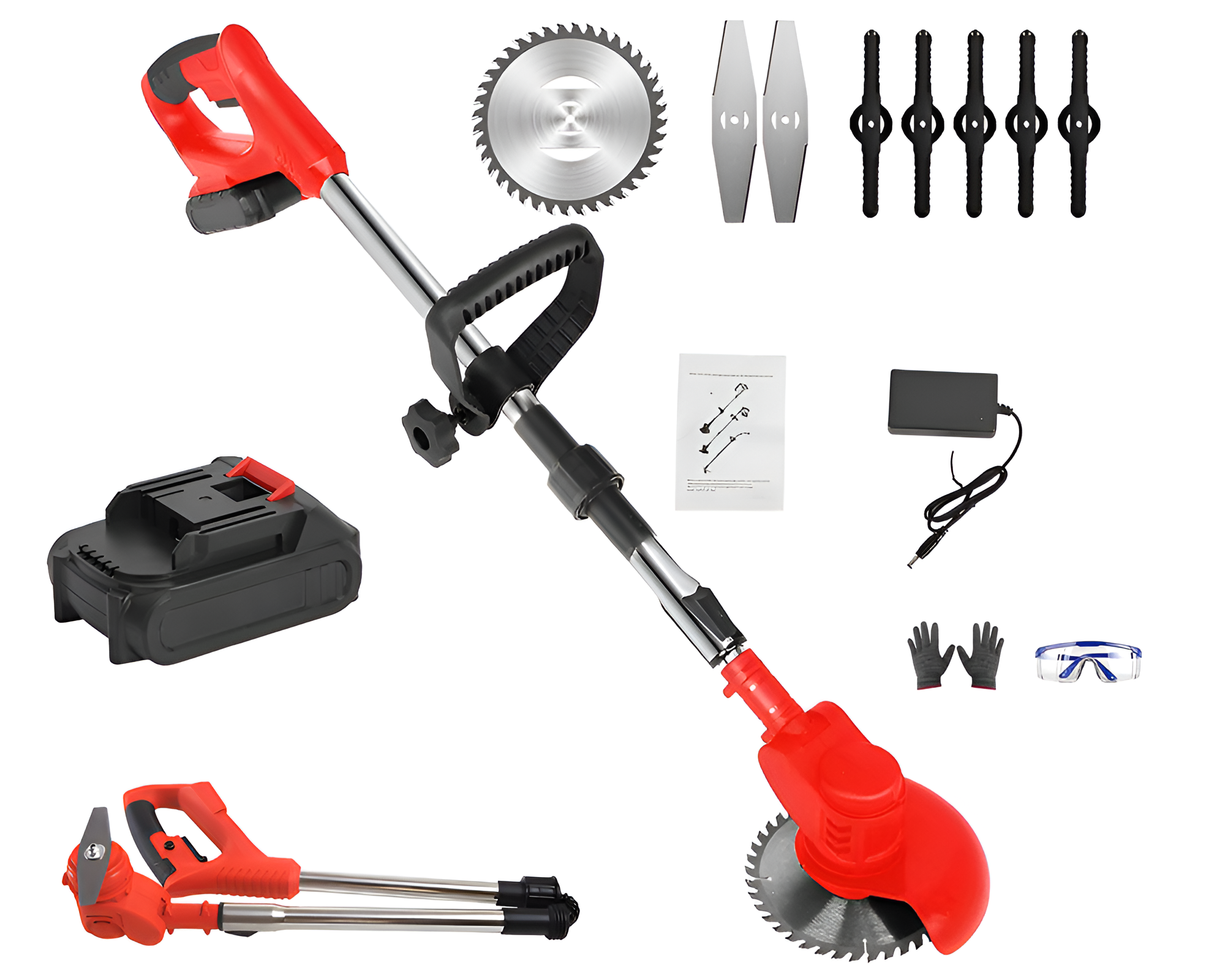 • Flexible Cutting Angle: 180-degree adjustable head lets the Foldable String Grass Trimmer reach under trees, flower beds, and corners with ease.