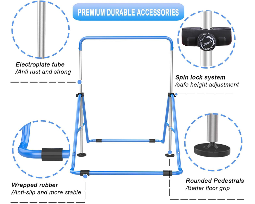 • Foldable & Easy Assembly: These Gymnastics Bars fold in seconds for simple storage, and the included tools make assembly quick and hassle-free.