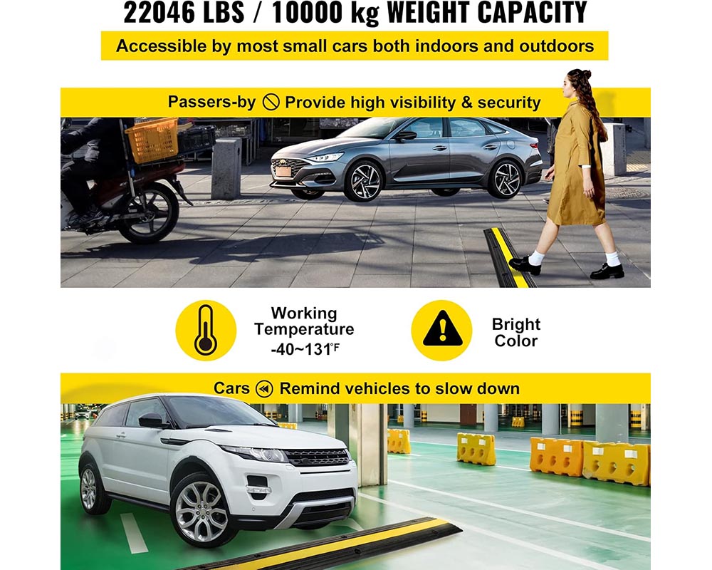High performance capacity: the load capacity of the hose protection ramp of 18,000 pounds is designed for large vehicles. It can also be used as a speed ramp.