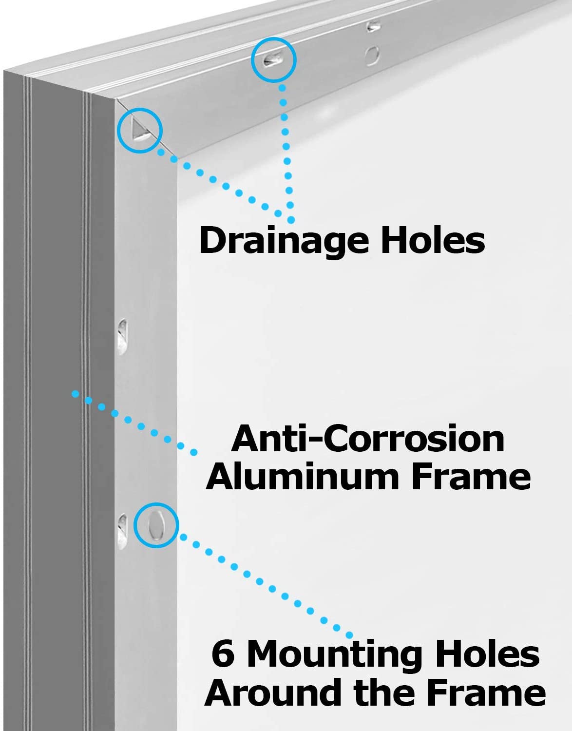 - Corrosion-resistant anodized aluminum frame for strength and easy mounting