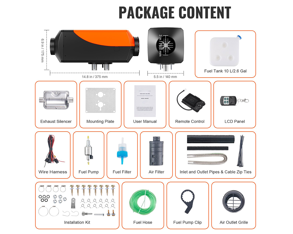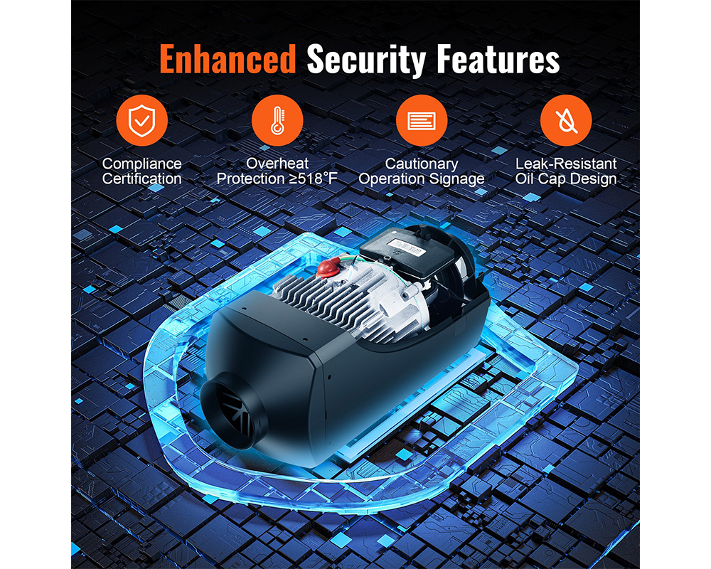 - Automatic Altitude Adjustment: Optimized for elevation changes, this diesel air heater auto-adjusts to maintain consistent combustion at high altitudes.