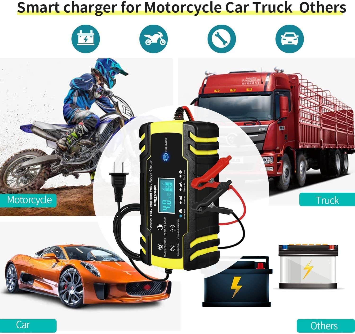 Car Battery Charger, 12V 8A/ 24V 4A Car Battery Charger, Fully Automatic, Smart Trickle Charger with LCD Touchscreen for Car, Motorcycle, Lawnmower, or Boat (Batteries from 6Ah-150Ah)