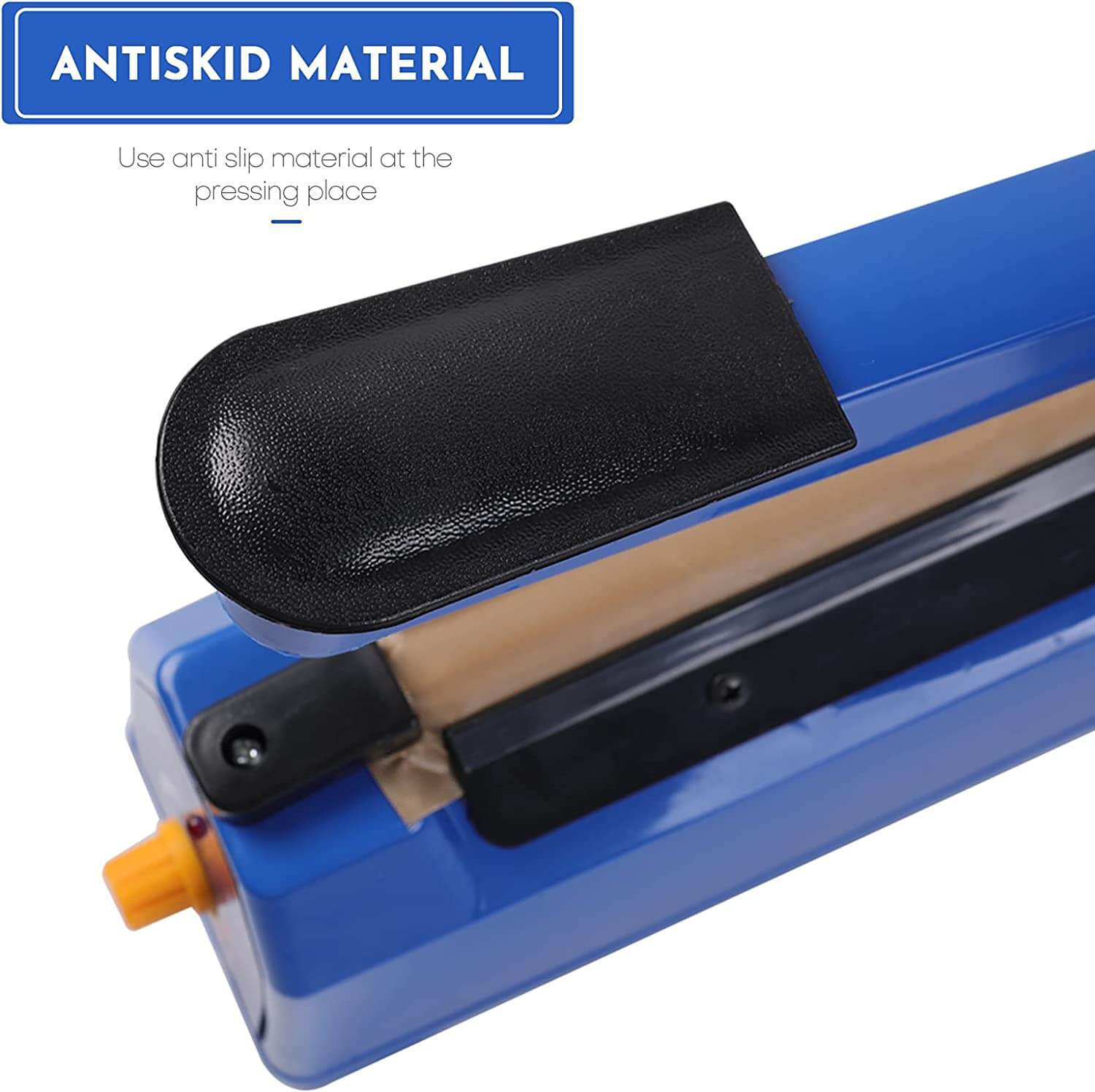 Multiple Size Options: Choose the ideal sealing length for your needs from three available models: 8 inch (200mm), 12 inch (300mm), and 16 inch (400mm). The sealing width is 2mm or 3mm, and it supports a maximum sealing thickness of 10 mils.