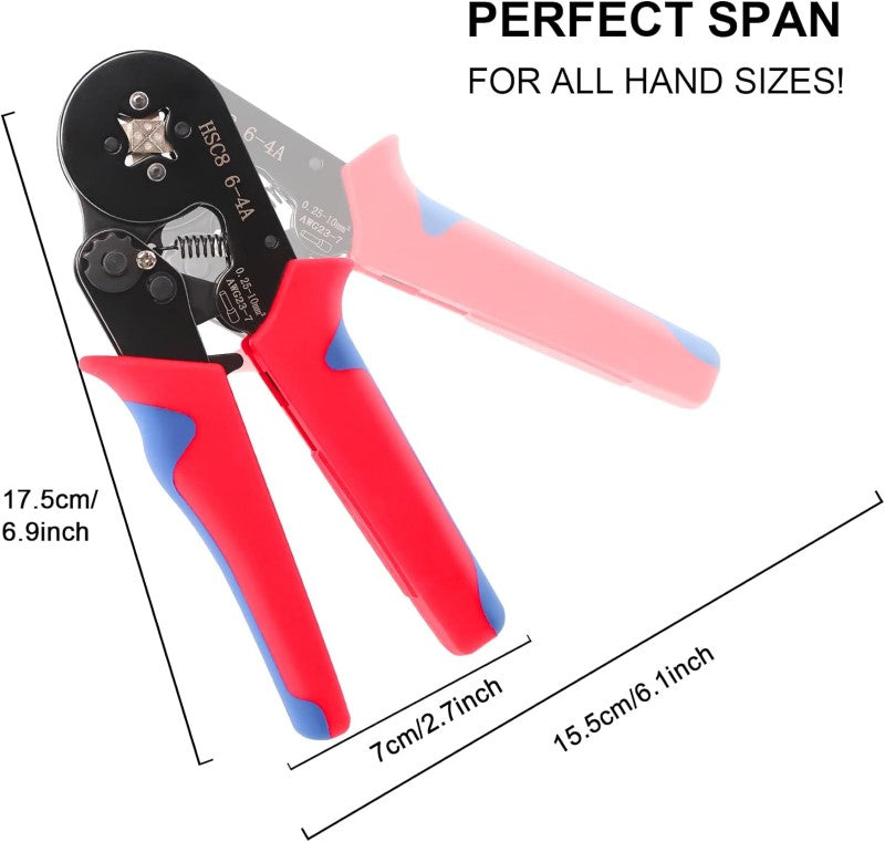 - The included crimping tool is designed to crimp cable lugs from 0.25 to 10.00 mm². The tool features an automatic adjustment feature that adapts to the corresponding insulating sleeve for each specific cable, ensuring precise and reliable crimps every time.