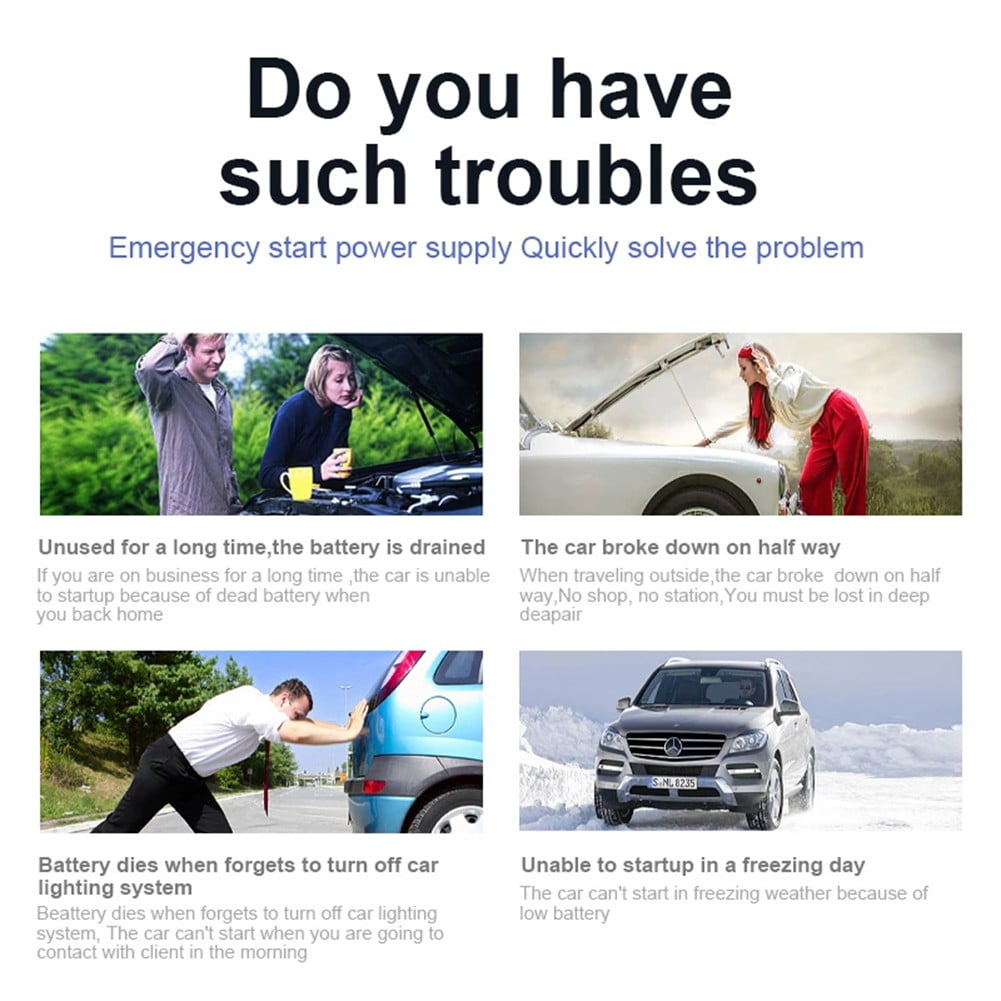 With its advanced features, high-capacity battery, and durable design, this Portable Car Jump Starter Power Bank is perfect for long drives, camping trips, and emergency situations. Whether you need to jump-start your car, charge your devices, or use a flashlight, this all-in-one solution has you covered.