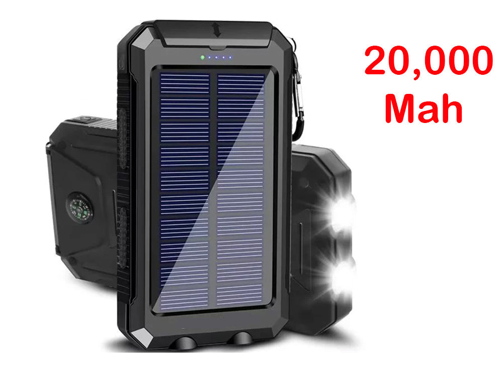 20000mAh Power Bank Solar Charger for Cell Phone iPhone, Power Bank Portable Solar Power Bank with Dual 5V USB Ports, 2 Power Bank LED Light Flashlight, Compass Battery Pack for Power Bank Outdoor Camping Power Bank Hiking (BLACK)
