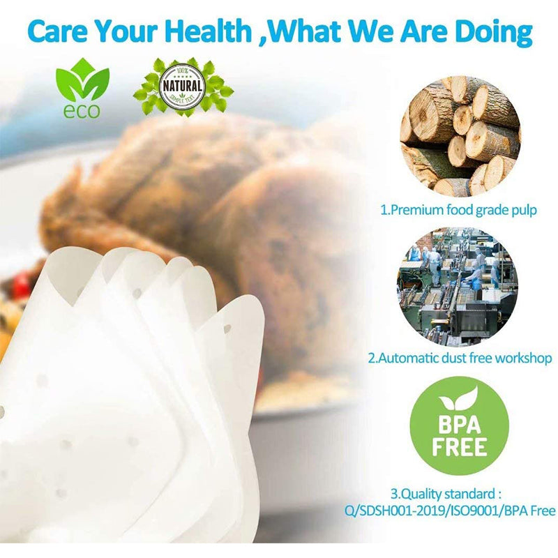 - Greaseproof and Waterproof: Prevents residues and oil stains from dripping into the pan, making cleaning your air fryer effortless and keeping it looking new.