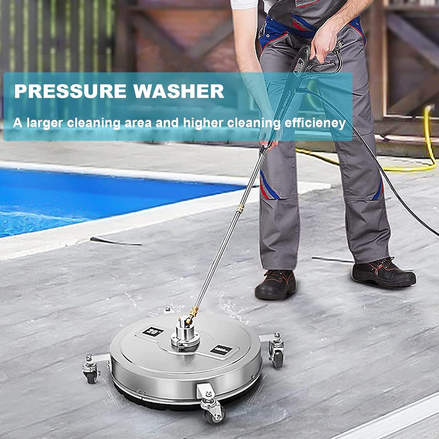 - 16.5''/18''/20'' pressure washer surface cleaner provides multiple sizes of commercial grade cleaning areas.