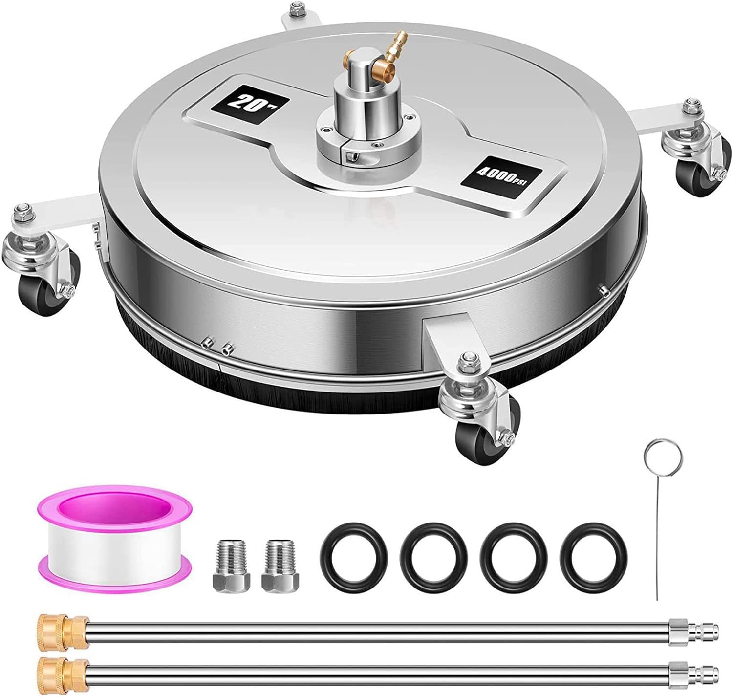 20" Pressure Washer Surface Cleaner, 1/4" Quick Connector, Attachments with 2 Extensions, 2 Replacement Nozzles, 4000 PSI Max Pressure, 50cm/20in