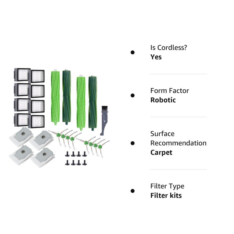 This replenishment parts kit is compatible for iRobot Roomba E series E5 (E5134), E6 (E6198), E7, I series i7(7150), i7+ i7 plus(7550) robotics.