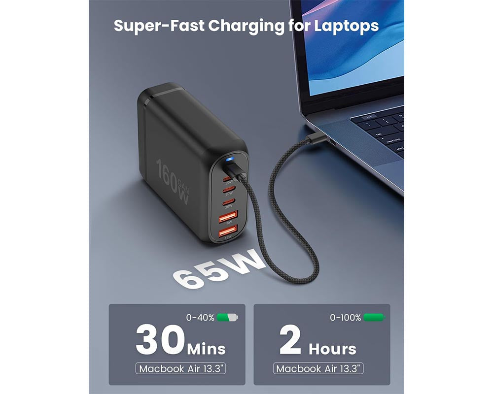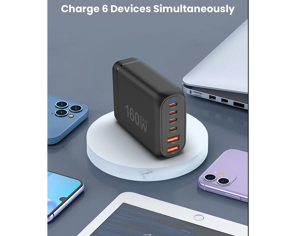 6-Port 160W USB C Charging Station GaN Technology for Faster, Safer Charging