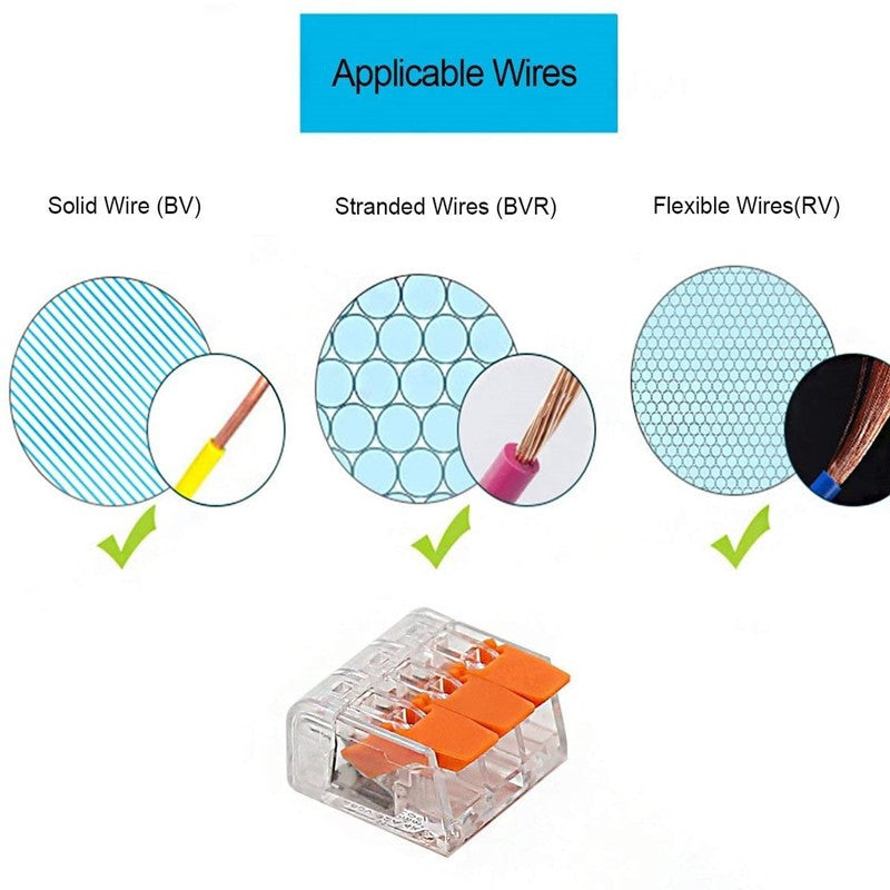 These connectors provide an efficient, safe, and easy-to-use solution for all your wiring needs. With high-quality materials and advanced insulation, you can trust these connectors to provide long-term reliability. Ideal for home wiring projects, automotive repairs, and electrical work, they provide superior security compared to older methods like wire nuts. Whether you're a professional or a DIY enthusiast, these connectors ensure a secure and hassle-free connection every time.