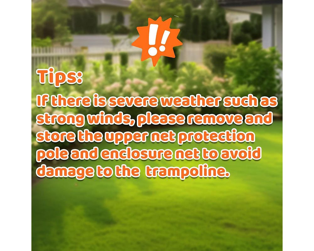 Rest assured with the ASTM F381-16 certification, which guarantees that this trampoline meets the highest safety standards. The securely enclosed net prevents users from falling off while the well-spaced poles allow for greater movement and reduce injury risks. Safety is prioritized so kids can jump, bounce, and play freely. -