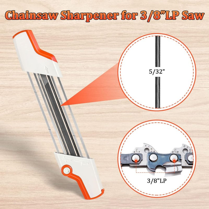 Upgraded 2-in-1 Chainsaw Sharpener: With a 13/64'' file diameter suitable for 3/8'' saw chains, this sharpener features handles at both ends and dual files, enabling quick, accurate, and efficient sharpening, saving you valuable time.