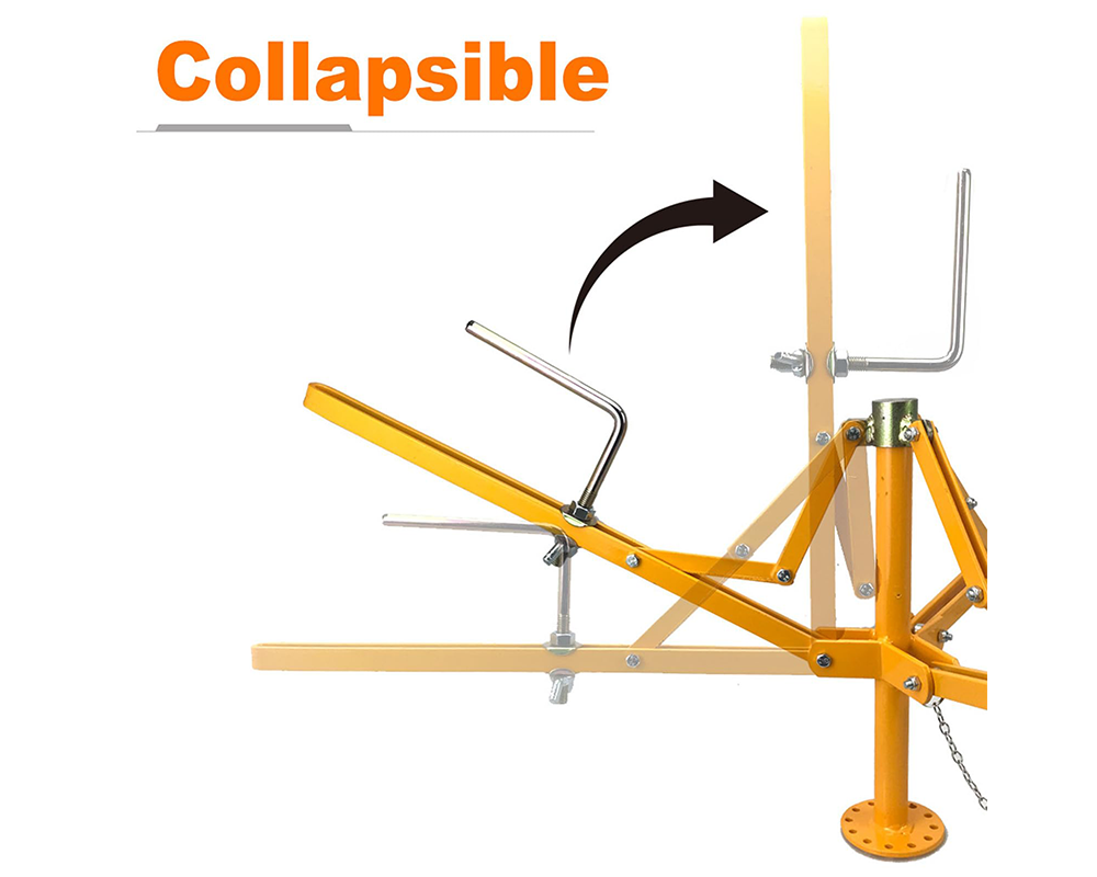 Collapsible frame folds down for compact storage and easy transport between job sites. -