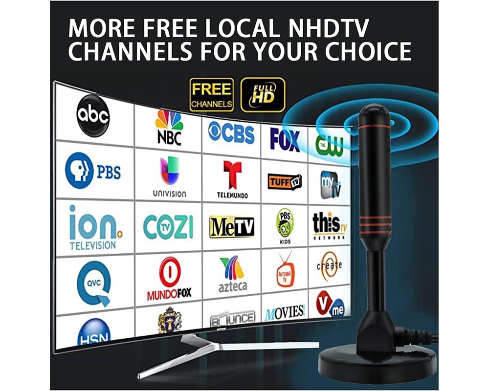 This Digital TV Antenna offers powerful performance with long-range reception and high-definition support. Whether you're indoors or outdoors, enjoy free HD TV with the convenience of flexible placement and easy installation. Cut the cord and access all your favorite local channels with no monthly fees!