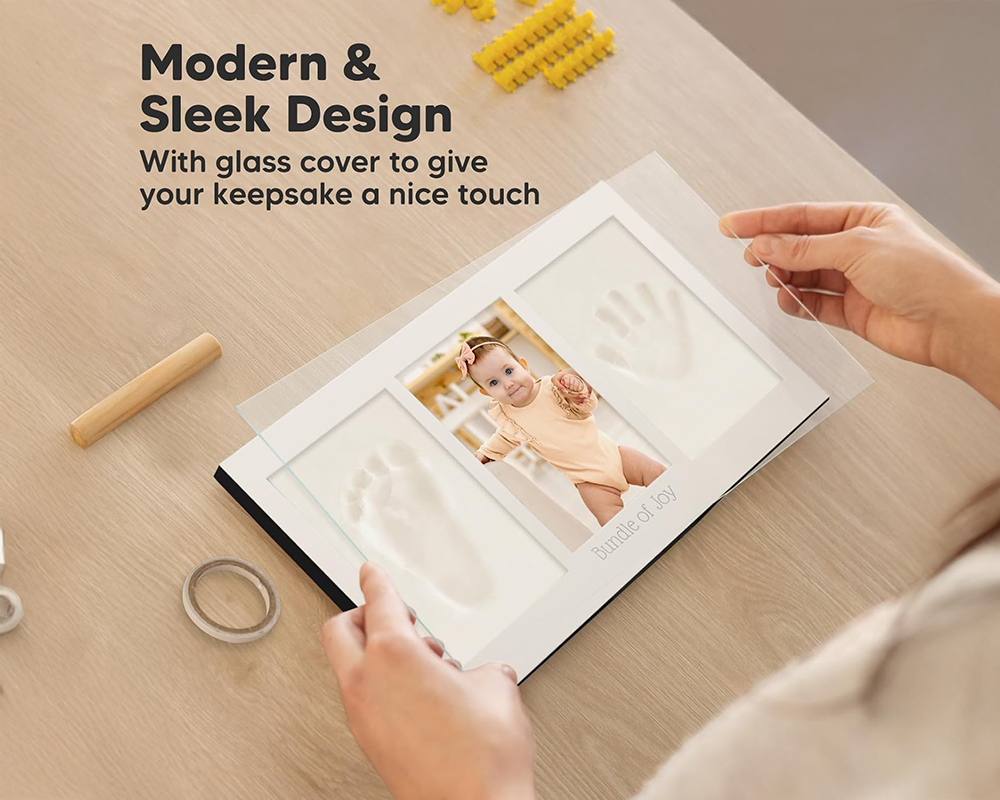 Capture your baby’s most precious moments with this Baby Footprint and Handprint Memory Kit. Designed for newborns and perfect as a baby shower gift, this Baby Footprint and Handprint Memory Kit helps parents create beautiful keepsakes that last a lifetime. With non-toxic clay, a sturdy wood frame, and customizable name/date details, the Baby Footprint and Handprint Memory Kit is the perfect way to treasure every tiny print forever.
