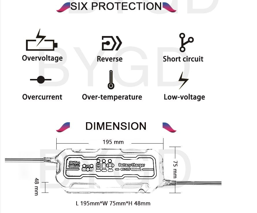 BYGD 6V / 12V Car Battery Charger 5000mA: Intelligent Battery Charger and Guardian.
