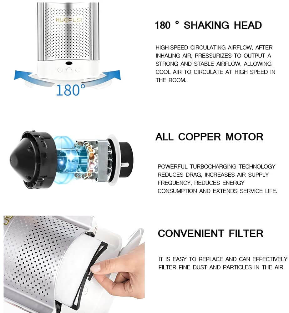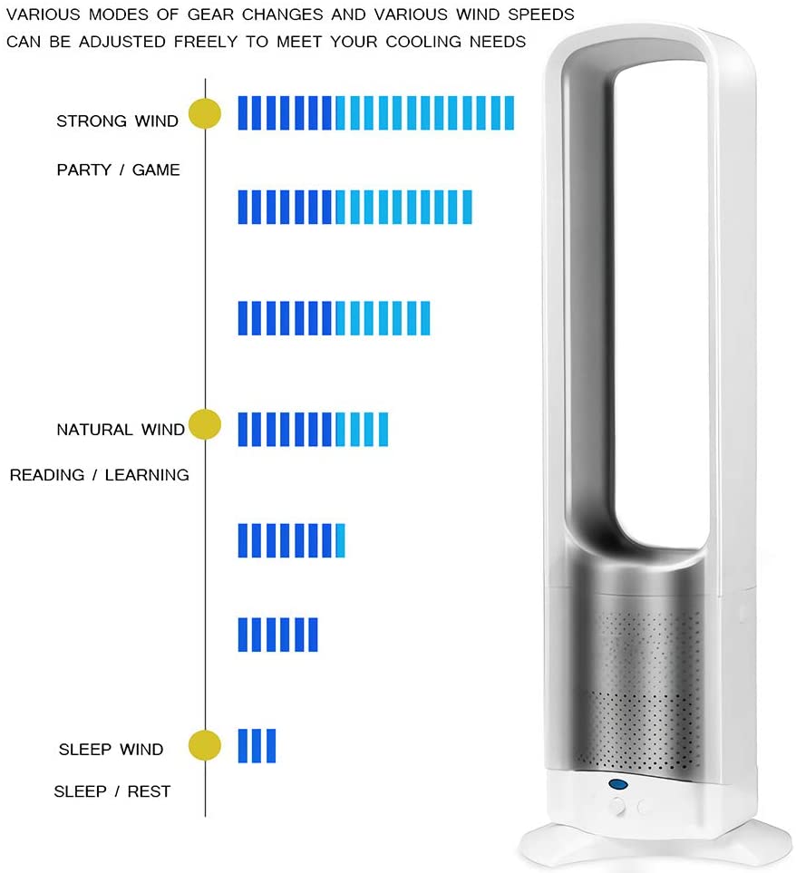 - Thanks to its no-blade design, the fan can be easily wiped clean with a damp cloth, removing the hassle of disassembly and maintenance.