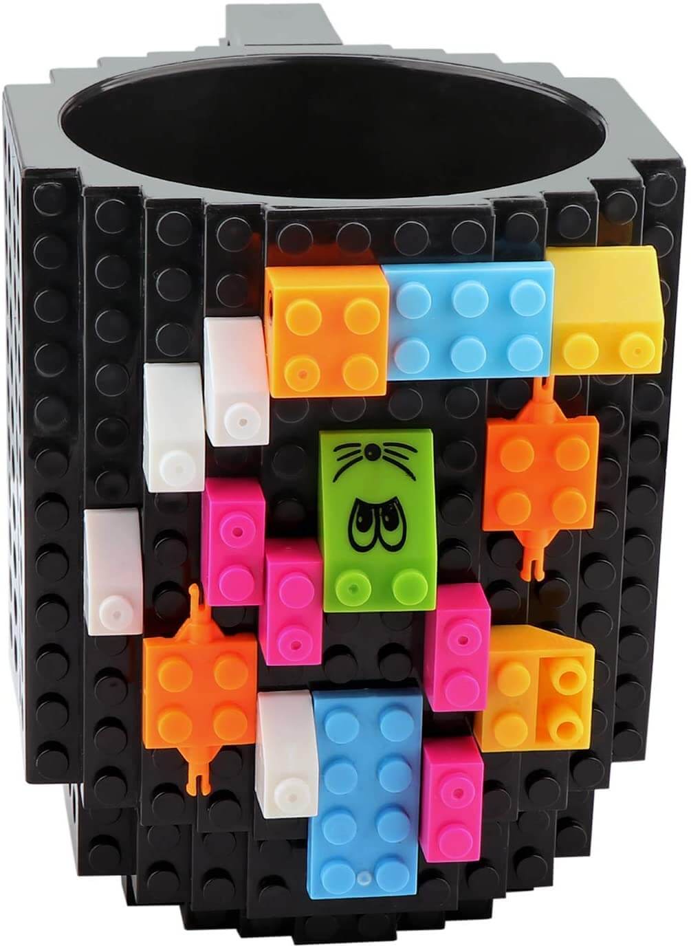 - Classic interfaces on cup body and handle compatible with Lego building bricks.