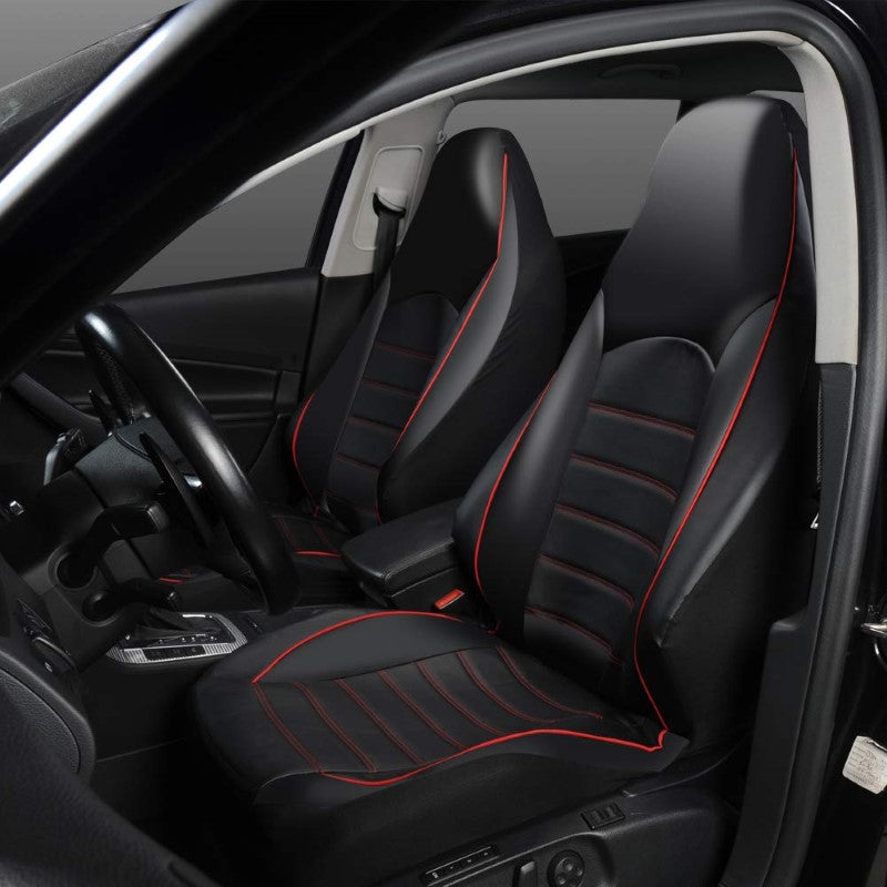This set of car seat covers includes two front seat covers, perfect for protecting your seats from everyday wear and tear. Car Seat Covers The black with red lines design adds a stylish touch to your car interior.
