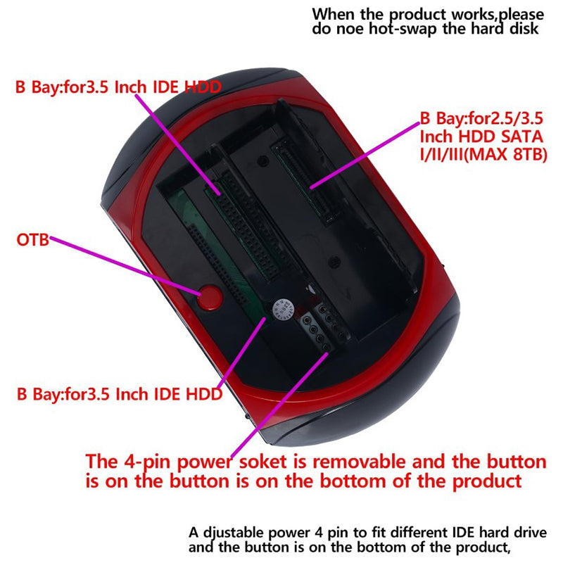 - Supports all 2.5"/3.5" IDE and 2.5"/3.5"SATA Hard Disk of any capacity (Except Western Digital hard disk).
