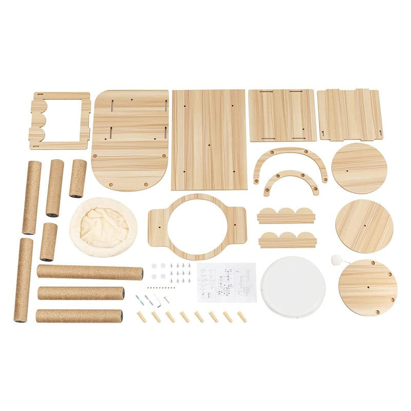 Premium Construction: Crafted with a sturdy, thick particle board made from high-quality wood, this cat tower is covered with soft, skin-friendly long-pile artificial fur. The grab posts are wrapped in natural, eco-friendly sisal rope, promoting healthy scratching habits for your cat.