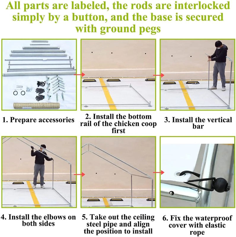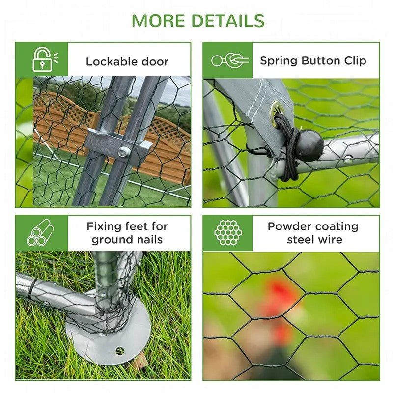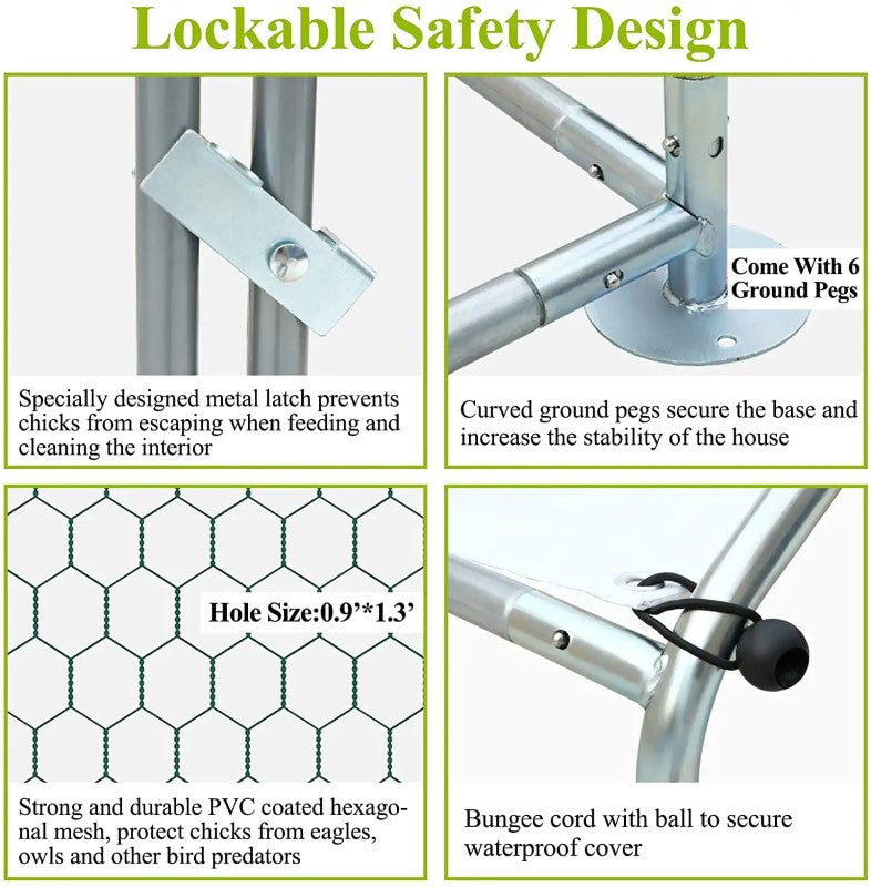 Sturdy & Durable Construction: Made from 1mm thick galvanized steel, the structure is heavy-duty and built to withstand outdoor conditions without rusting. It provides a strong, secure environment for your chickens.