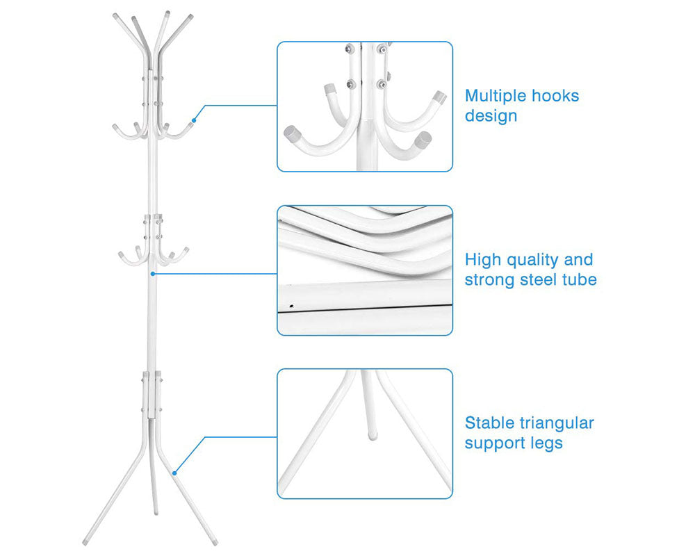 - Setup: Assemble the coat stand by following the included instructions. A flat-head or Phillips screwdriver is needed (not included).