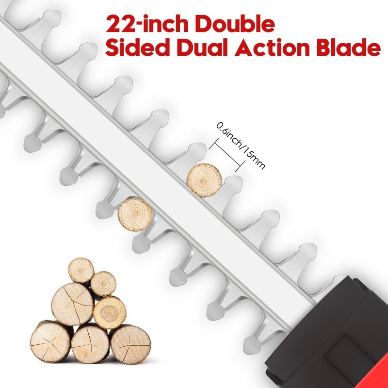 Durable Carbon Steel Blade: The 22-inch blade made of high-quality carbon steel is designed to cut through branches up to 0.6 inches in diameter, making hedge trimming tasks effortless. Its double-sided dual action ensures smooth and precise cutting with minimal vibrations.