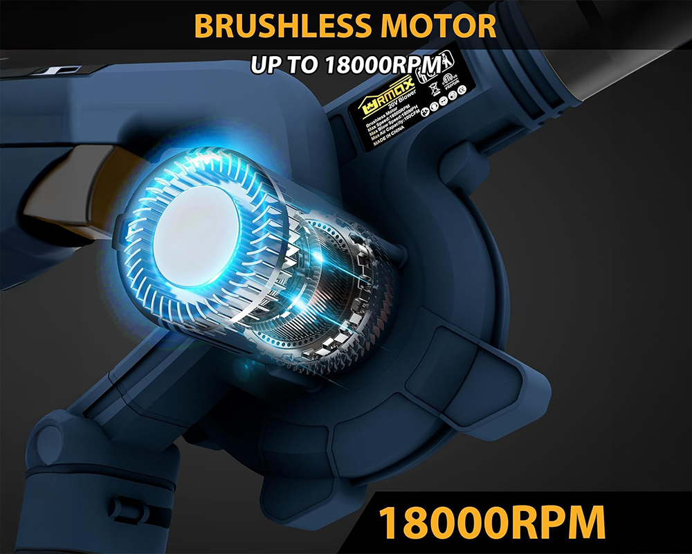 - High-Performance Brushless Motor: Runs up to 18,000RPM for powerful airflow and longer life.