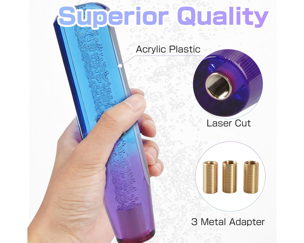Upgrade your car’s interior with this premium Shift Knob, designed for comfort, durability, and style. The transparent acrylic Shift Knob features a stunning blue-to-purple gradient with bubble details, adding a custom touch to your dashboard. This ergonomic Shift Knob ensures smooth, precise gear changes every time.