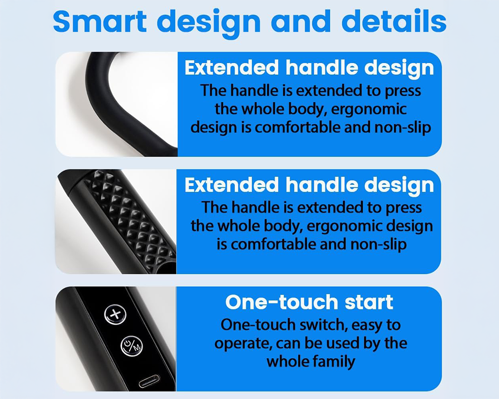 - Two-Handed Grip: Effortless use on all body parts without fatigue.
