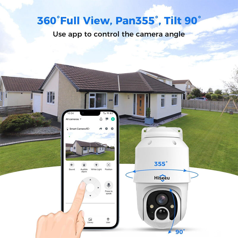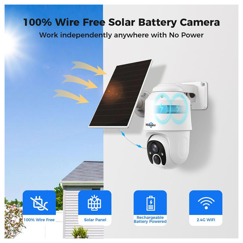 Hiseeu 2K 3MP WIFI Solar Battery Powered PTZ WiFi Camera PIR Motion Detection