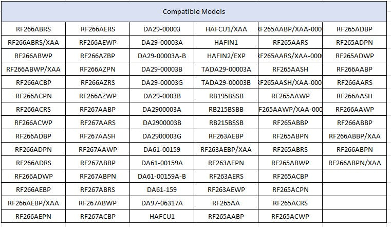 This DA29-00003G Water Filter replacement works with a wide range of Samsung refrigerators, including (but not limited to):