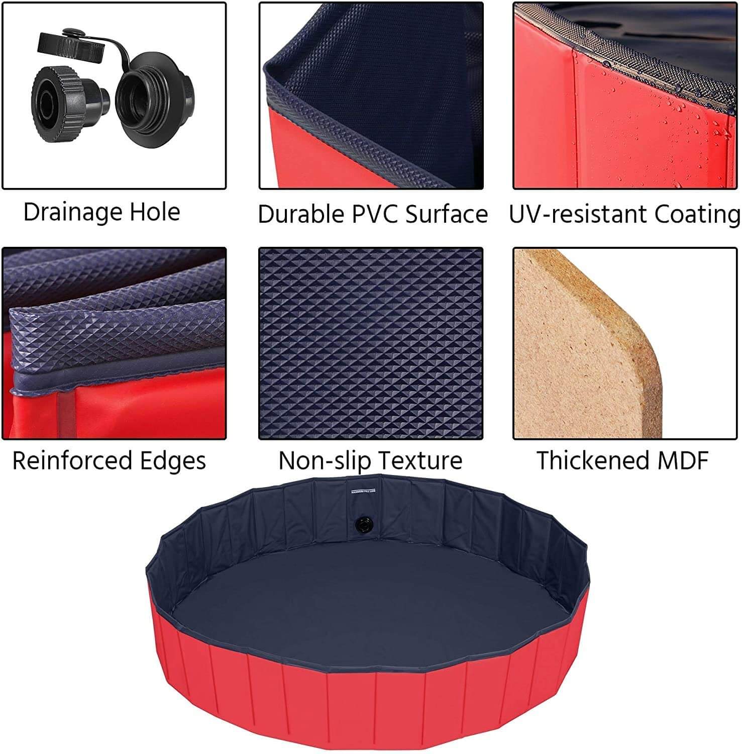 - Durable PVC Material: Made from thick, high-quality PVC with a reinforced fiberboard base, this Pet Swimming Pool is built to last through years of fun.