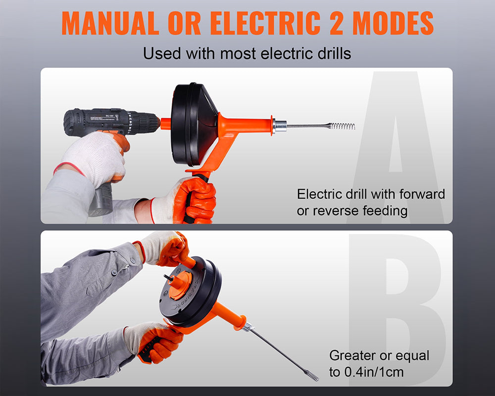 - Manual & Drill-Powered: Use the Drain Cleaner by hand or connect it to your power drill for added torque and faster results.
