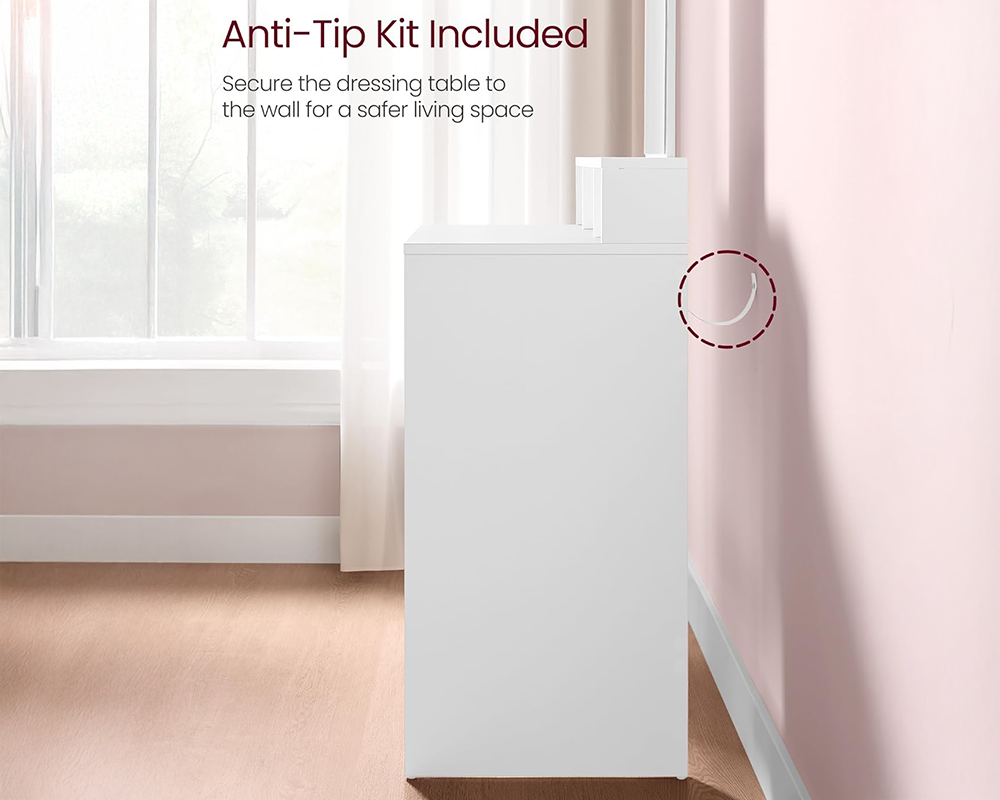 - Stable & Secure: Anti-tip kit included for added safety when secured to a wall.