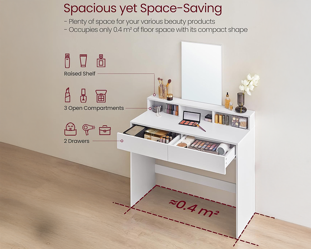 - Durable & Easy to Clean: Made from quality chipboard with a wear-resistant veneer surface, keeping your Dressing Table looking new for years.