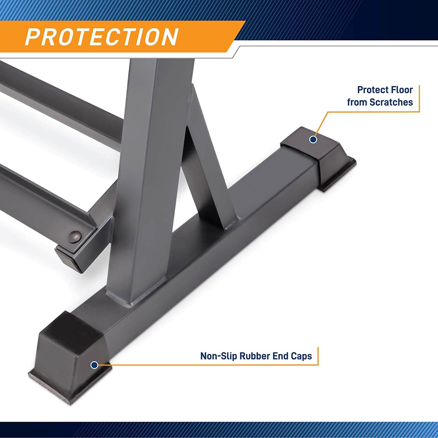 - Multi-Level Storage for Free Weights: This rack stand features a 3-tiered storage space designed to accommodate dumbbells of all sizes, keeping them organized and easily accessible.
