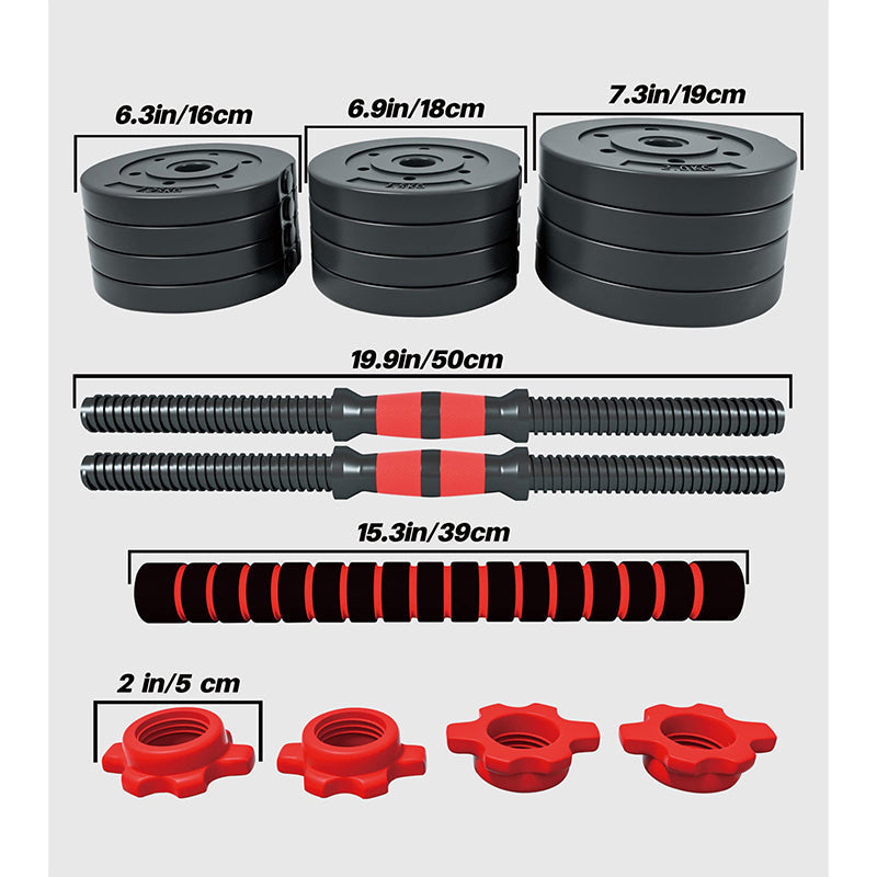 Multifunctional Dumbbell Set: This versatile set allows you to switch between 2 dumbbells, a barbell, or a push-up stand. Enjoy the flexibility to perform full-body exercises, even in limited space, with ease. Whether you're targeting your arms, chest, legs, or back, this set provides the functionality of three different equipment types in one.