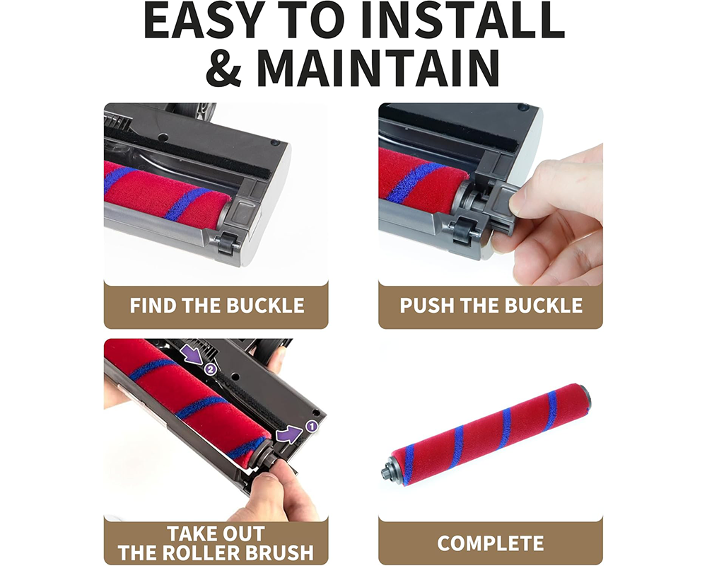 - Double-sided large roller design for efficient cleaning with the Dyson Roller Brush.