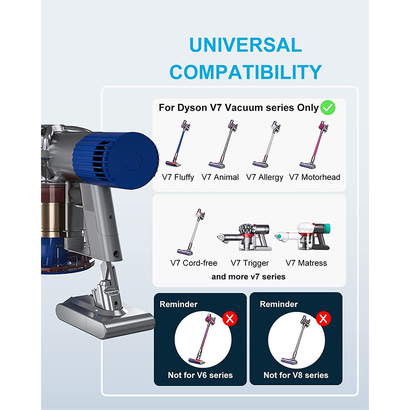 Upgrade your Dyson V7 vacuum cleaner with this high-capacity 4000mAh replacement battery. Designed to match the original specifications, it offers extended runtime and powerful suction.