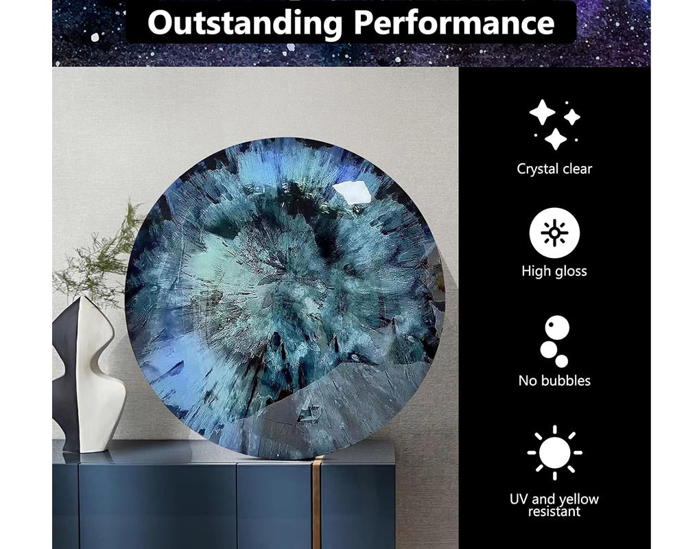 Epoxy resin can be create flawless, transparent resin projects with a glossy, glass-like finish that enhances the colors and details of your designs. Perfect for jewelry, tabletops, resin art, and more. -