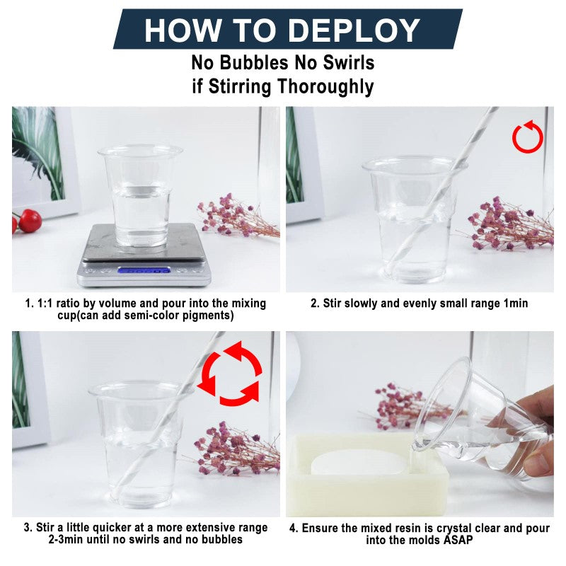 - Crystal Clear & Self-Leveling: This easy-to-use epoxy pour kit ensures a crystal clear casting and coating system. Epoxy Resin For the best self-level effect, stir for 3-4 minutes and pour into molds as soon as possible.