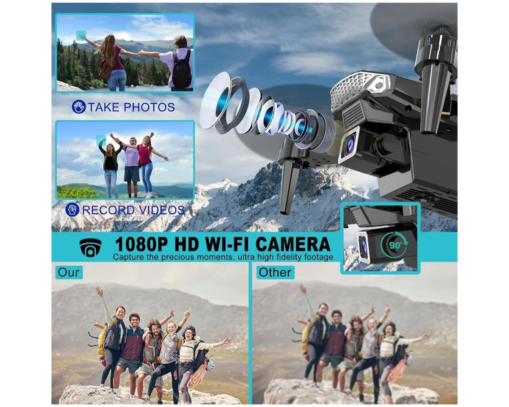 - Foldable Design: Compact and portable, this Mini Drone is easy to carry for outdoor adventures, travel, or photography trips.