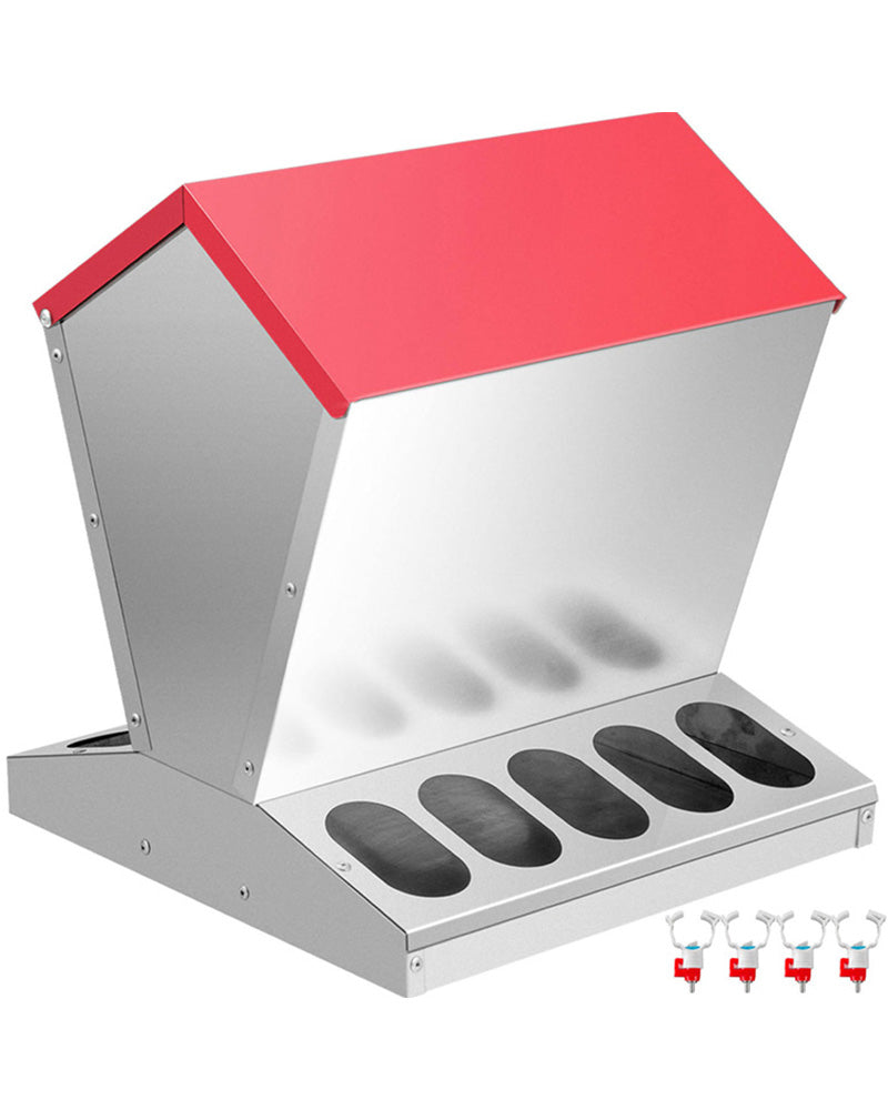 A no-waste 25 lbs metal feeder designed for efficient feeding of chickens, ducks, geese, and other poultry.