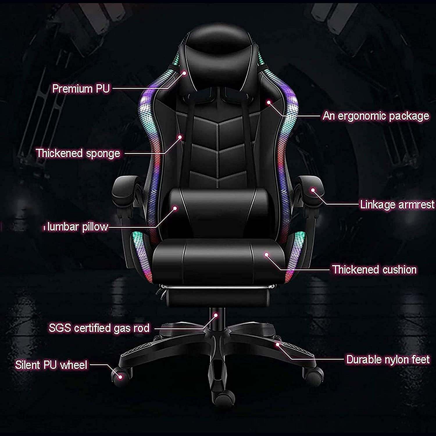 RGB LED Gaming Chair – Ergonomic Office Chair with Bluetooth Speakers and Footrest