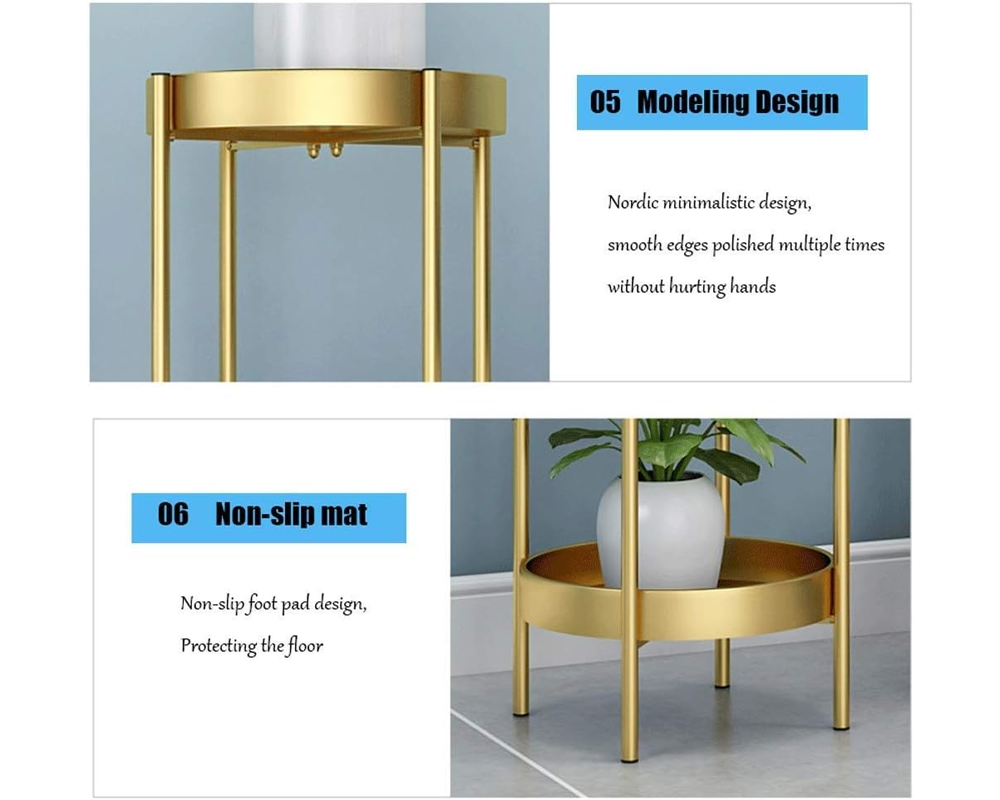 Showcase your favorite plants with this Gold Flower Pot Holder. This 2-tier plant stand is perfect for indoor or outdoor use, allowing you to display flowers, bonsai, books, or decorative items elegantly. Lightweight, foldable, and portable, this gold plant stand enhances any corner, living room, office, balcony, or garden while providing stable support for your plants.