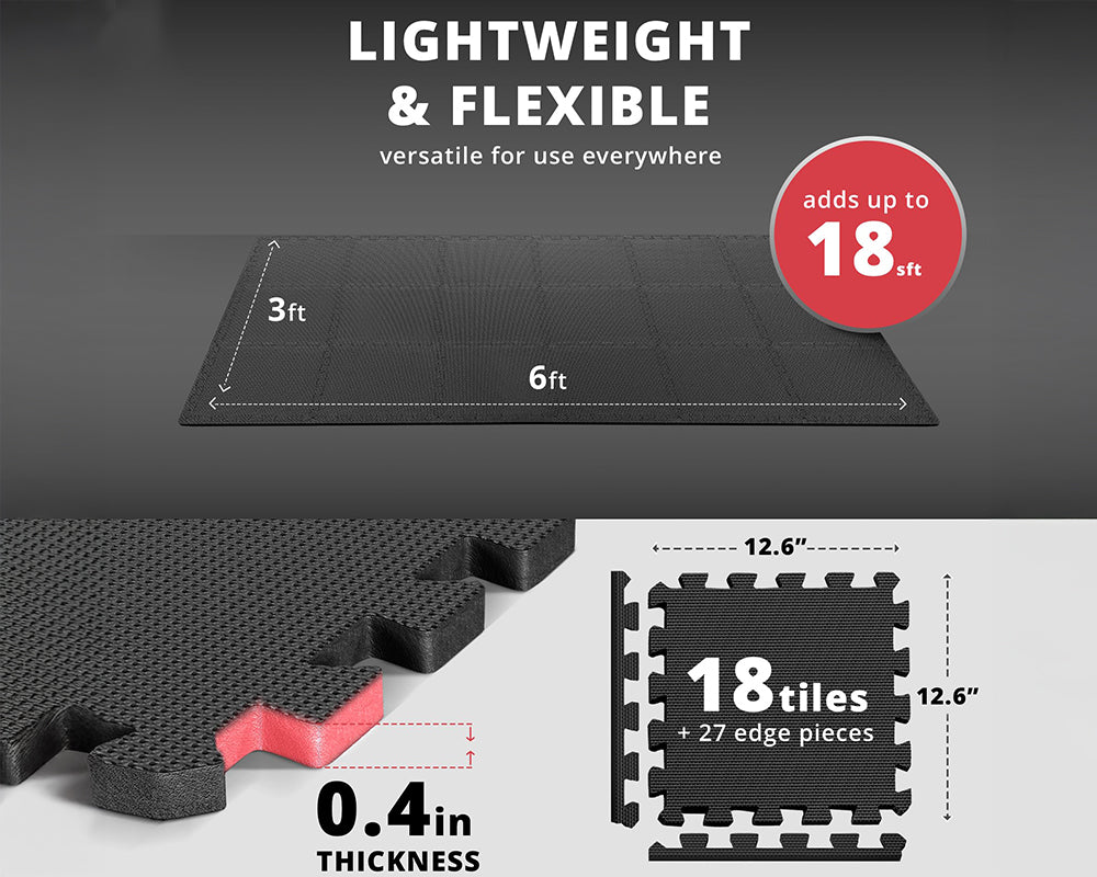 Gym Flooring Mat 18 Piece Interlocking EVA Foam Tiles for Home Gym, Garage, Fitness & Workout Spaces